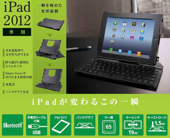 iPad2012専用ケース一体型Bluetoothキーボード - TK-FBP048ECBK