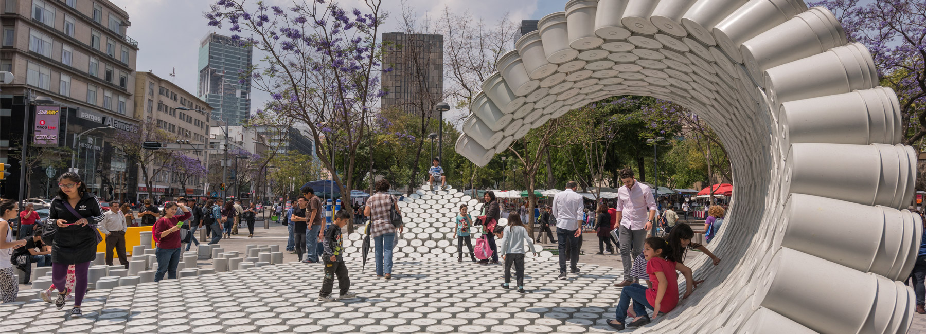 wave of buckets floods mextropolis architecture festival in mexico city